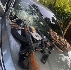 Durante a ação, os agentes apreenderam um fuzil AK-47, duas pistolas, carregadores – um deles com capacidade aumentada de munições – e quatro veículos.
